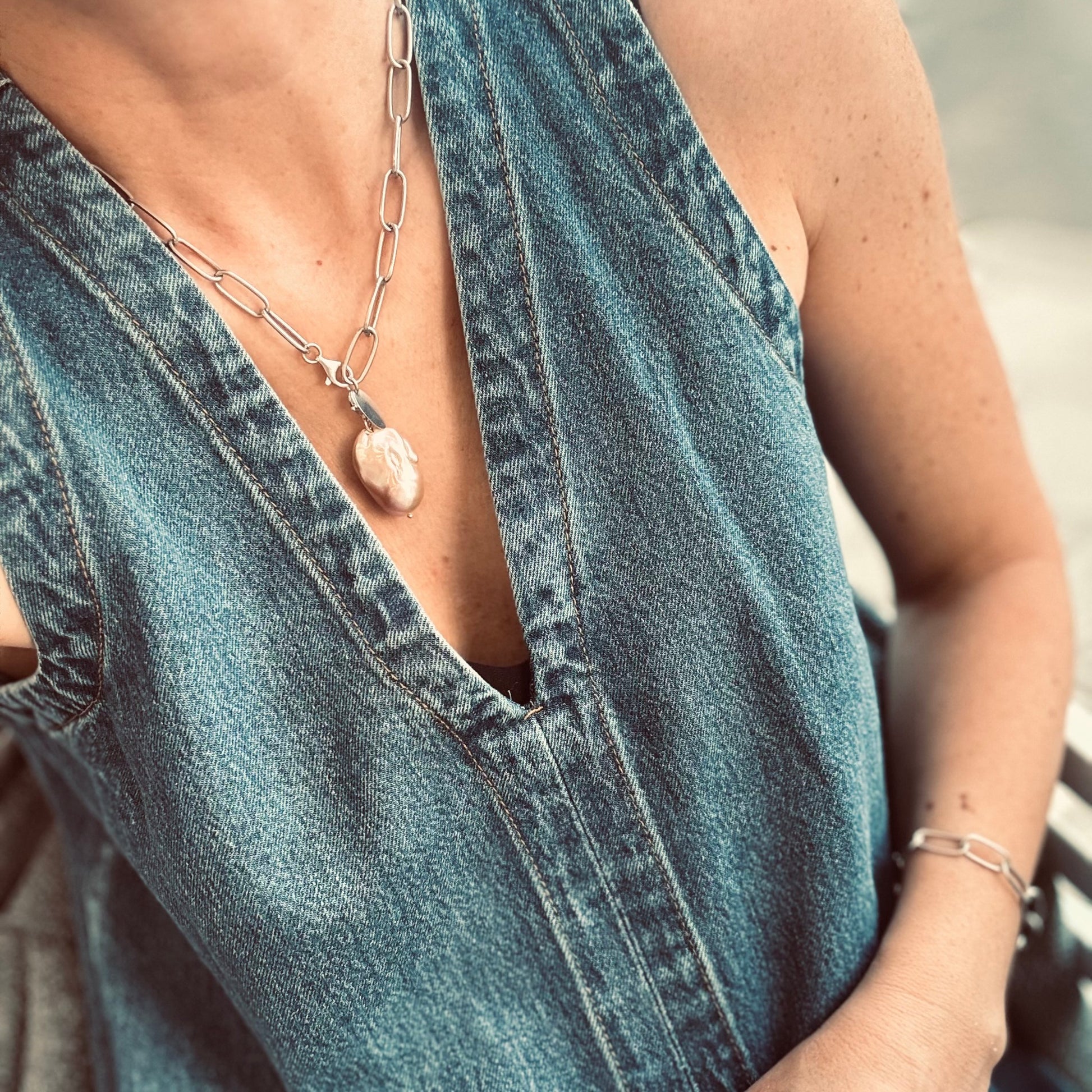 Trendige Barock Perle, die sich mit dem silbernen Karabinerverschluss im Nu an verschiedene Ketten/Ohrringe tragen und kombinieren lässt.